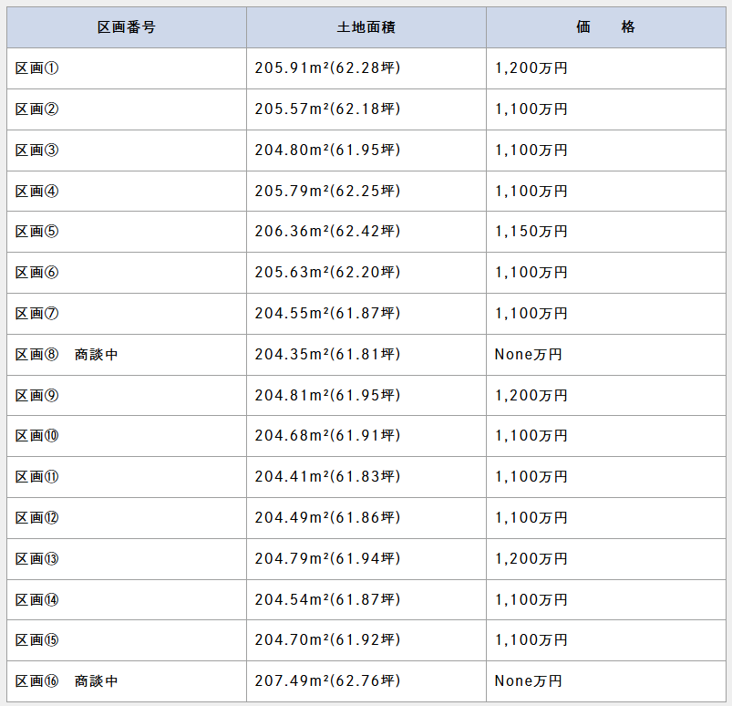 16区画価格帯:1,100~1,200万円